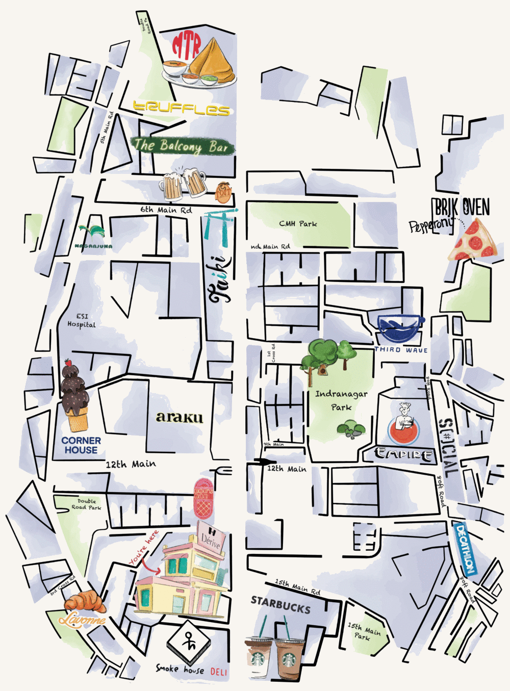 A Dérive is an unplanned journey through a landscape on which the surrounding architecture and geography subconsciously direct travellers with the ultimate goal of encountering an antirely new and authentic experience. Come experience Dérive by Dwellingo at Indiranagar 100 feet road, Bangalore.